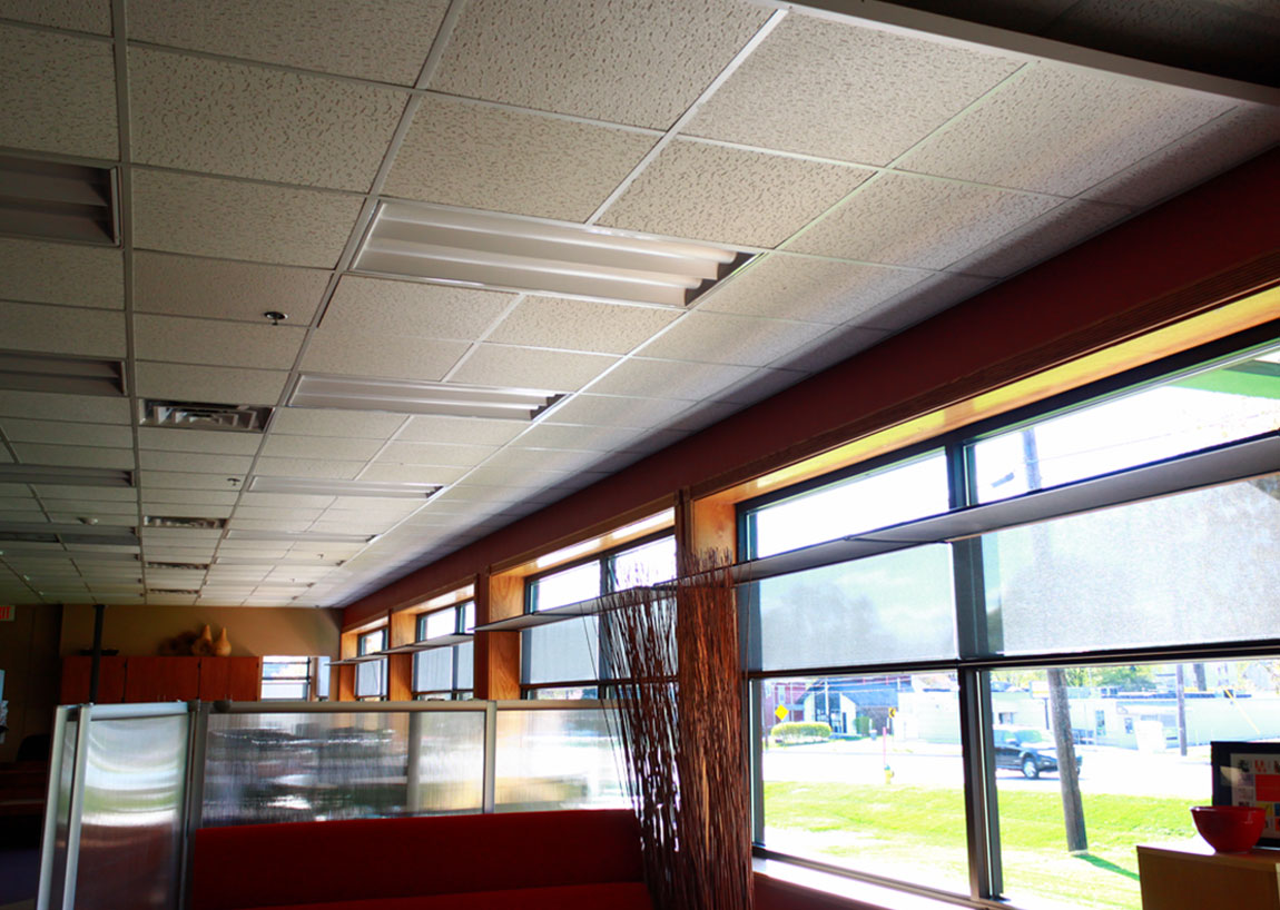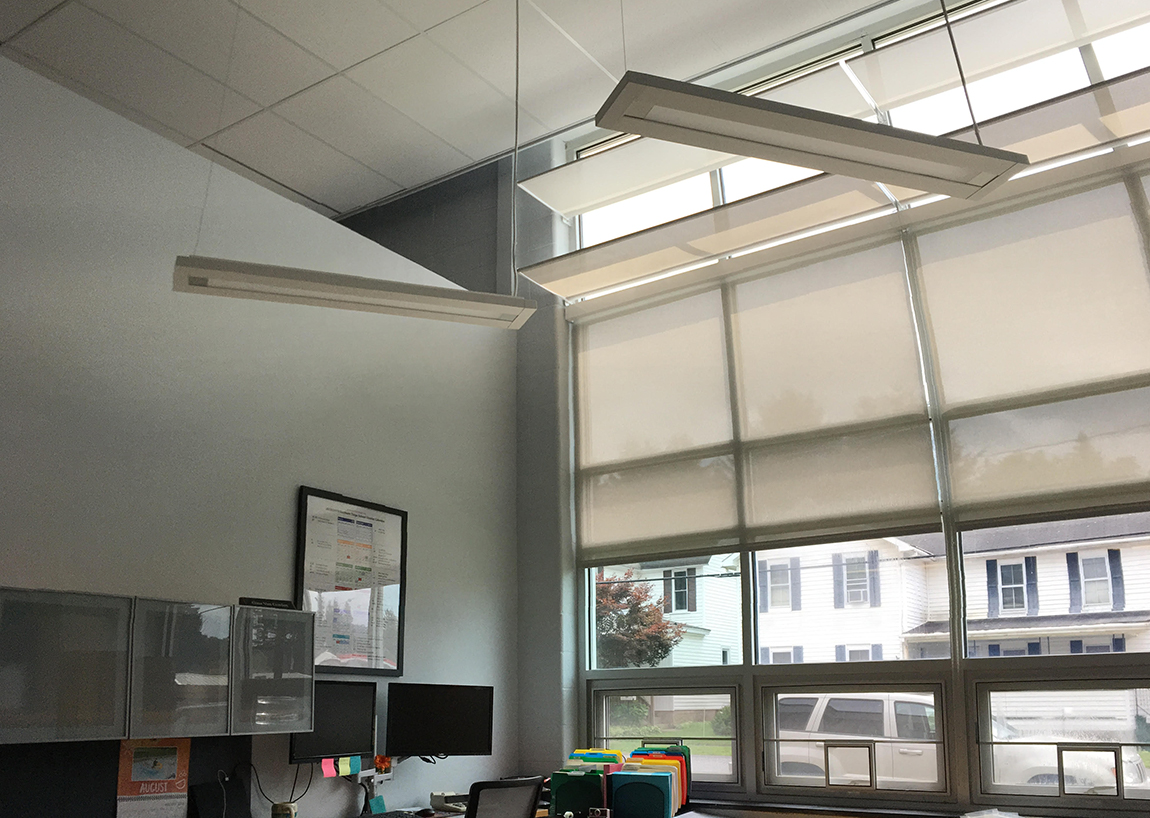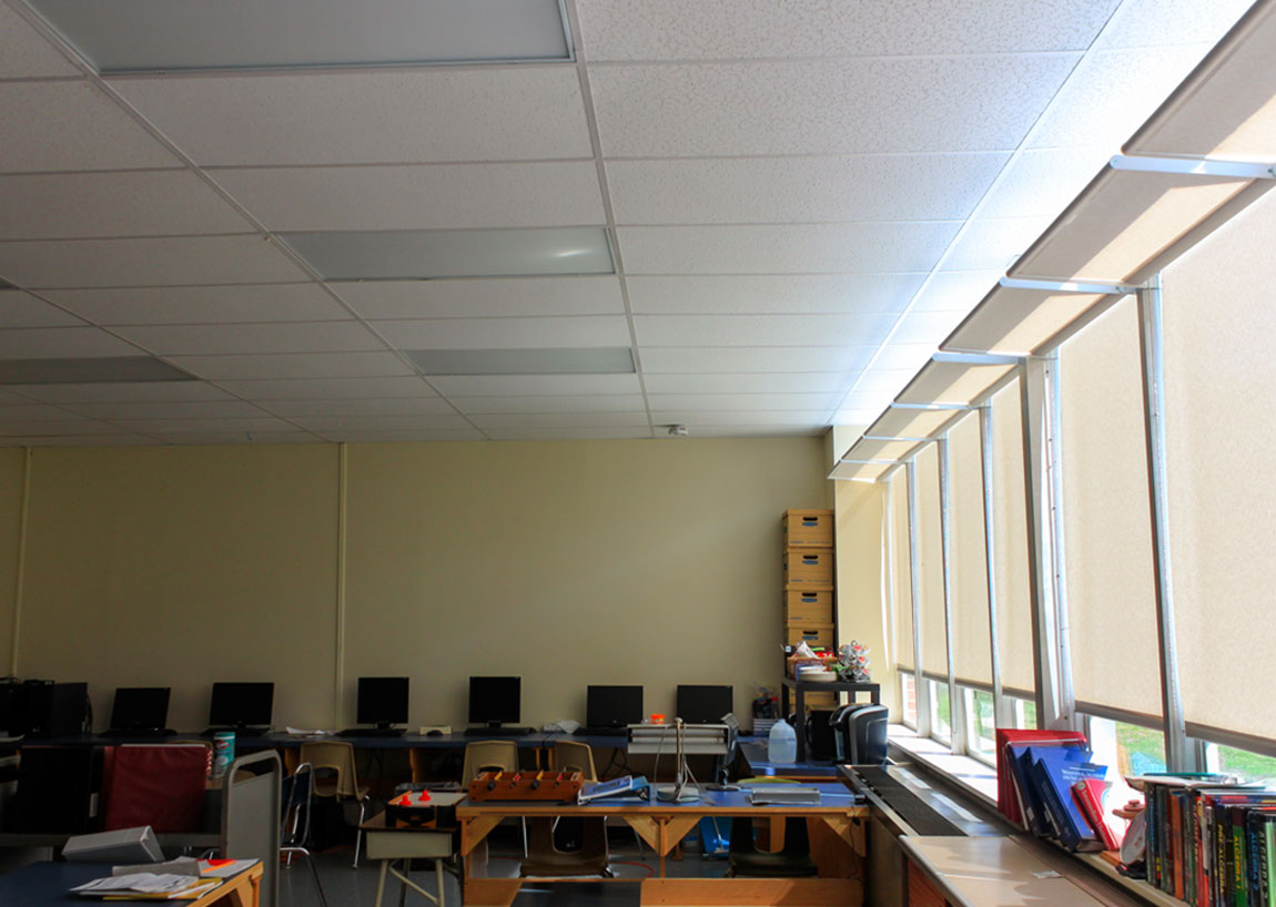 The Dayliter Shade is mounted down from the head of the window so there is no obstruction to daylight flowing onto the ceiling. Add to that the impact of the fabric lightshelf and diffused daylight penetrates deep into the room using the ceiling as a vehicle.