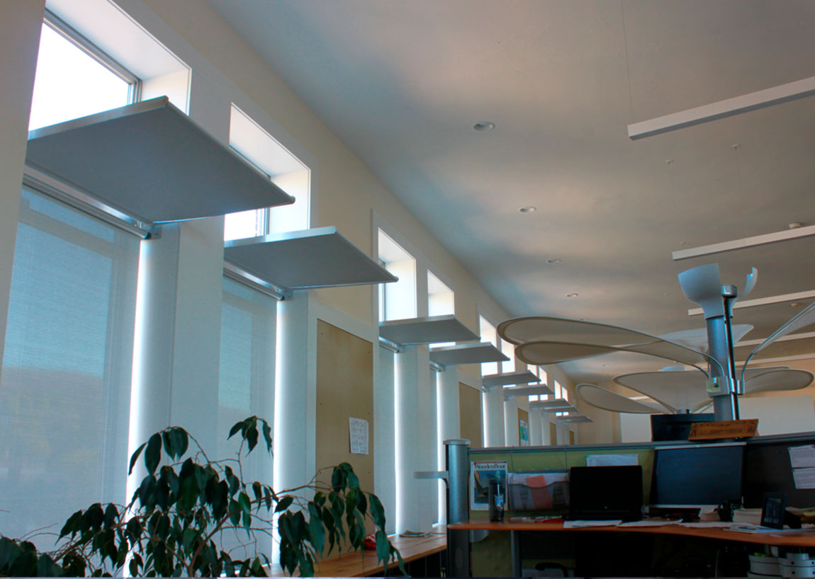 Dayliter Shades use the ceiling (or adjacent lightshelves) to bring diffused daylight deeper into a space.